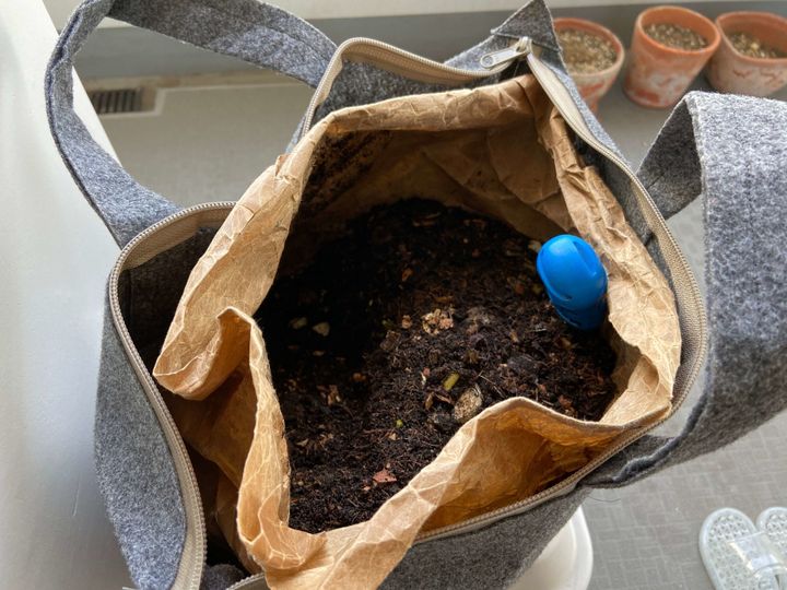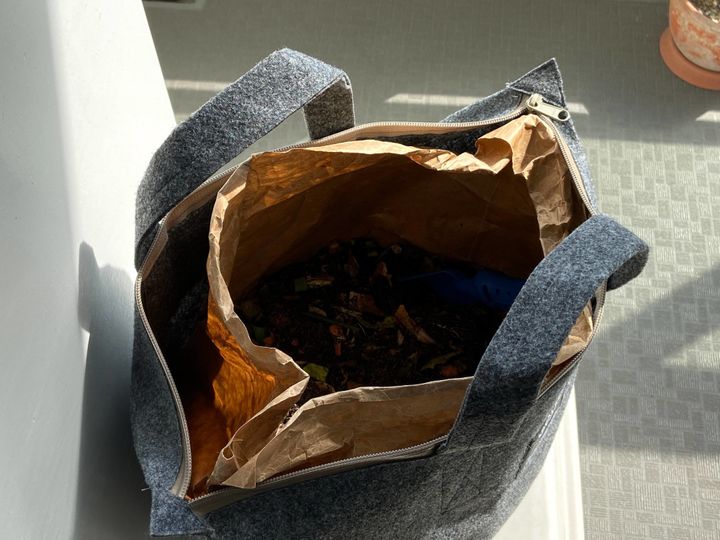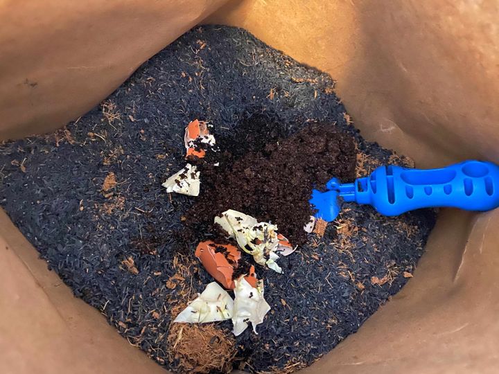 バッグには新たに届いた基材を入れて、また最初から生ゴミを入れていきます。