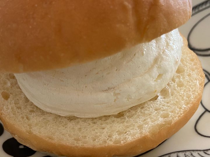 ハンバーガーのような形状のパンにクリームがサンドされているシンプルなもの。ハンバーガーよりは一回り小さいです。
