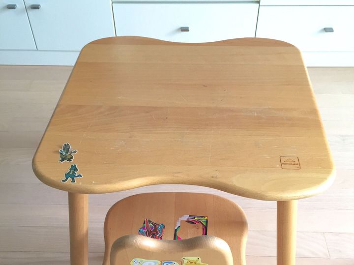 まだ子どもが小さかったので、子ども用の小さなデスクをリビングテーブルのように置いていただけ。ここで子どもがお絵かきしたり、おやつを食べたり…