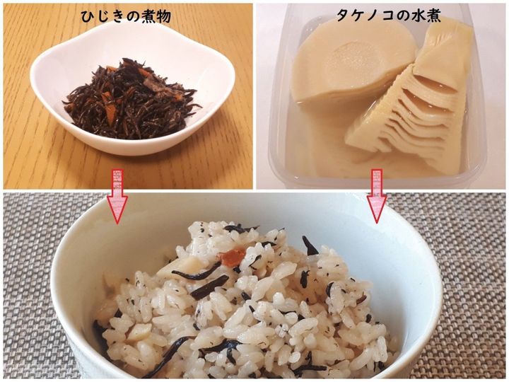 作り置きおかずの定番と春が旬の〇〇で!ラクラク簡単炊き込みご飯
