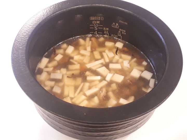 5 炊飯器に炊込みご飯モードがあればそれで、なければ白米モードで炊飯。