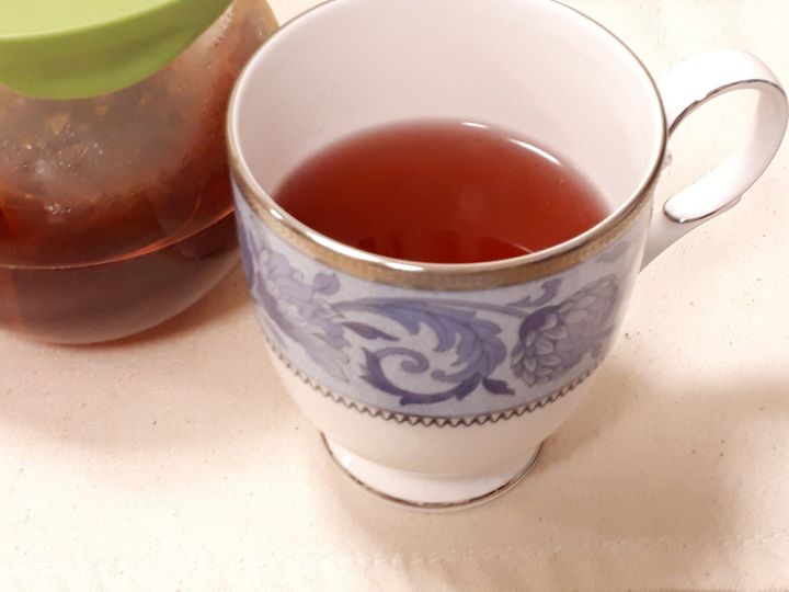 ゼリー作りに使ったハイビスカスティーの残りですが、私はカモミールやエルダーフラワー、ローズマリーなど好きなハーブを追加し熱湯を注いで、ブレンドハーブティーにしています。ハイビスカスの主要成分の多くは最初の抽出時に出てしまいますが、色や香りは2番抽出でも楽しめ、その時の気分にあったハーブをプラスすることで美味しく飲め、癒しのひと時を過ごせます。