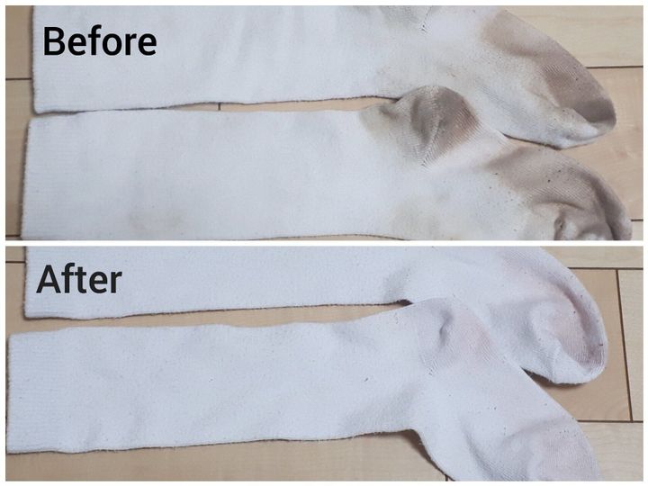 ソックスも大部分の汚れが落ちており、もし汚れが気になる部分がある場合はすすぐときに洗濯板で軽くこすって洗濯機に入れます。
