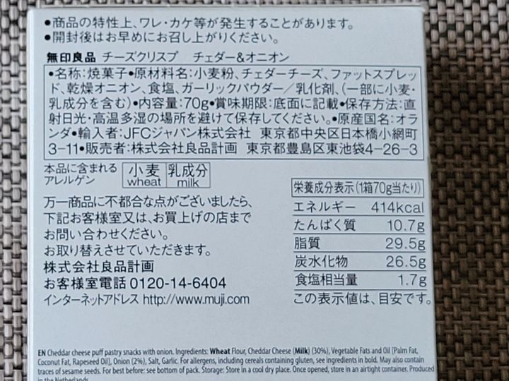 無印良品のチーズクリスプは、チェダー&オニオン、チェダー&ブラックペッパー、パルミジャーノの3種類が発売されており、価格はいずれも290円となっています。