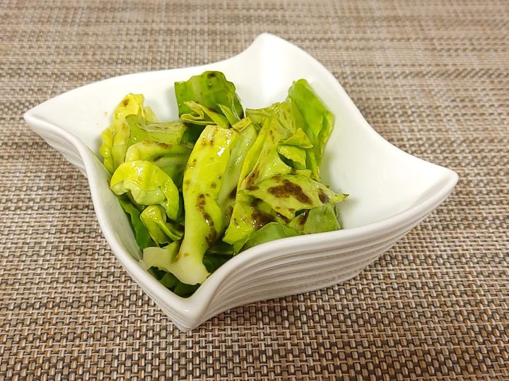 写真は旬の春キャベツに海苔の旨たれを和えたもので、箸が止まらなくなるおいしさです。