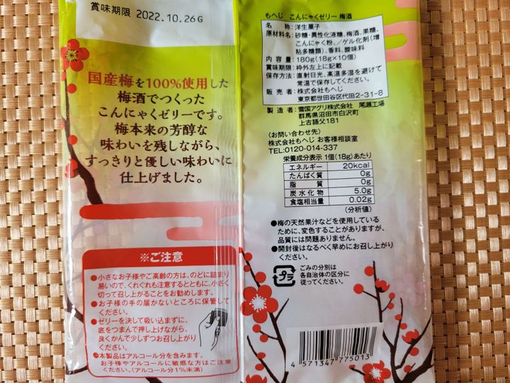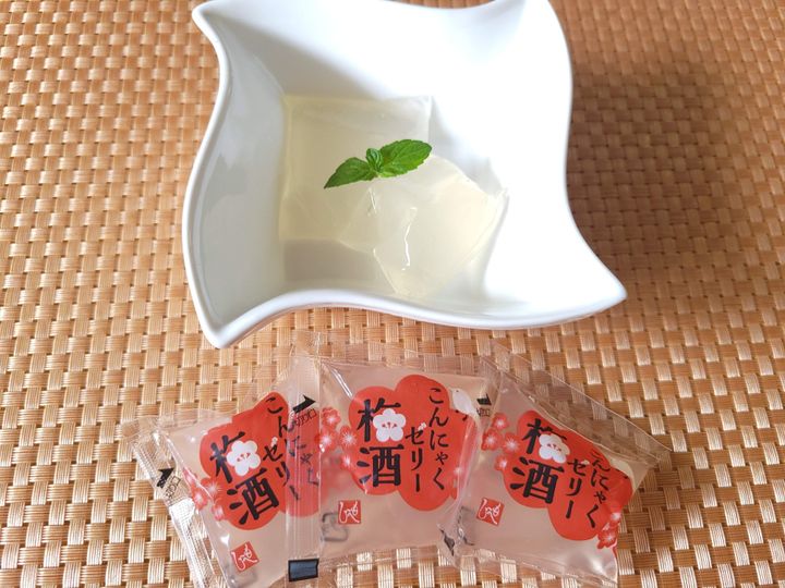 次にご紹介するのは、「こんにゃくゼリー梅酒」です。1袋に10個入って税込み267円で販売中です。