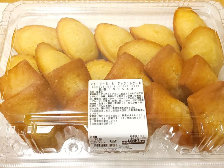 マドレーヌが10個、アップルケーキが10個、計20個の焼き菓子が入って1,998円(税込み)で販売されています。