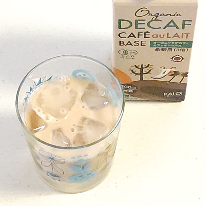 カルディオリジナルの一般的なカフェオレベースは砂糖入りですが、このオーガニックデカフェカフェオレベースは砂糖不使用となっています。コーヒー好きな人は無糖派も多いので、この点も最近のニーズに合っていると思いました。