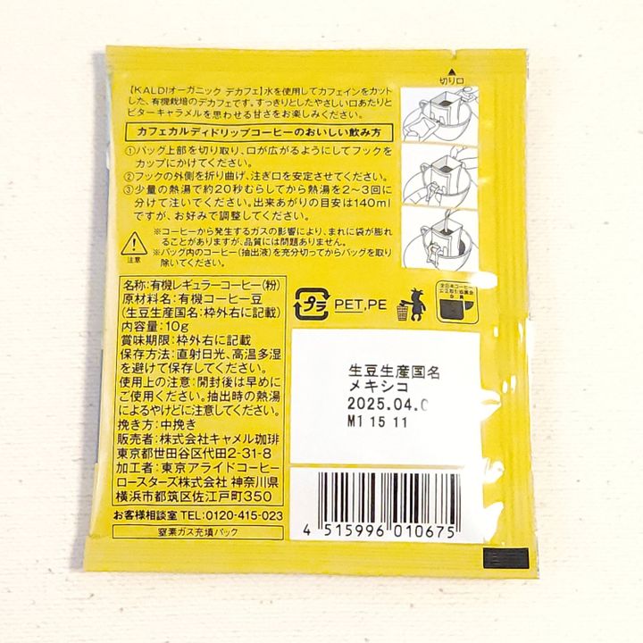 次にご紹介するのは、ドリップコーヒー「KALDIオーガニックデカフェ」です。