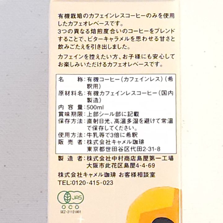砂糖不使用なのもうれしい!オーガニックデカフェカフェオレベース