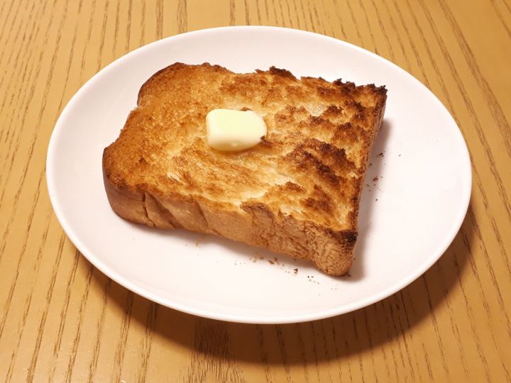 手でさいた方が食感が良いというのを実感したのは、トーストした時でした。パンナイフでスライスした方より、写真のように手でさいたものを焼いた方がサクサク感が増して美味しかったです。1.8斤とたっぷりサイズなので、そのまま、トースト、ピザ風トースト、たらこマヨトーストといろいろ変化をつけて楽しみ、朝食と子供たちのおやつであっという間になくなってしまいました。