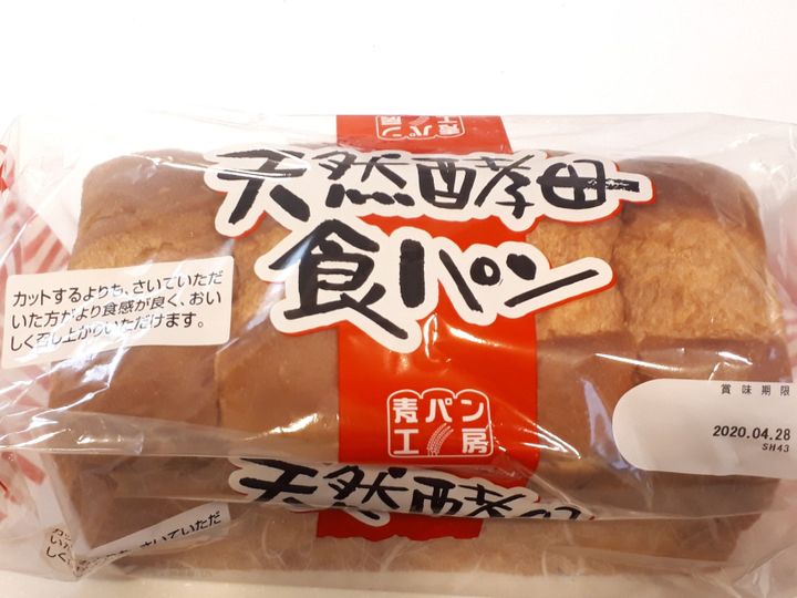 臨時休校が続く中、親子クッキングをされるご家庭も多いようでホットケーキミックスだけでなく、私の働く食品店ではパン作りの材料も品薄になっています。我が家ではこの2か月お米の消費量がかなり増えているので、朝食に手作りパンやスコーンを取り入れたりしています。先日うっかりお気に入りの白神こだま酵母ドライを切らしてしまい、勤務先でも品切れだったので業務スーパーでの買い物の際、以前から気になっていた「1日10,000本売れる」という食パンを購入してみました。ということで今回は、この業務スーパーの「天然酵母食パン」についてレポートします。