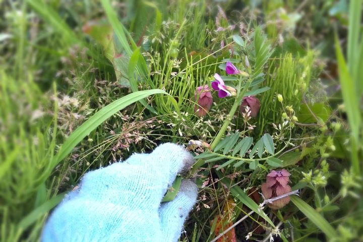 我が庭の大部分を占めていたのは、“カラスノエンドウ”という品種の草。