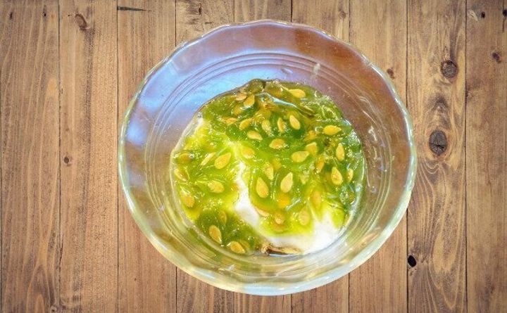 今回のように、皮に青みが残ったキワーノは、まだ完熟していない状態でした。黄色やオレンジ色になるまで室温で追熟させておくと、もっと種がやわらかくなって食べやすくなるといわれていますよ。