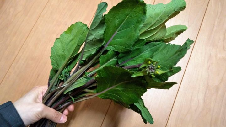 家庭菜園で初収穫した菜の花をはじめ、直売所で見つけた珍しい種類まで、いろいろと食べてみた筆者。
