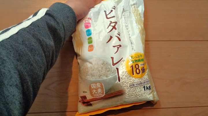 現在筆者は、「ビタバァレー」という種類を使っています。自宅にあったものは、見た目は米粒麦に近く、食物繊維の含有量は七分つき大麦に近い状態のものでした。(商品によって特徴が異なる可能性あり)