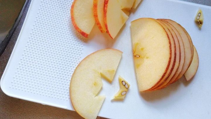 ちょうどよい大きさの星形の型抜きがあればそれを利用して芯の部分抜き取ったり、なければ包丁で切りこみを入れることで、かわいい形を楽しみながら芯を気にせず丸ごと食べられますよ。