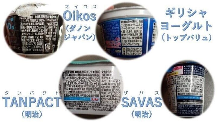 使われている甘味料で一番多いものは、「Oikos」が砂糖、「TANPACT」がアスパルテーム、「SAVAS」がエリスリトールとなっていたため、甘みの強さ以外に後味の違いも。
