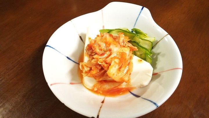 筆者がつくるいつものキムチ奴とは、豆腐を食べやすい大きさに角切りもしくは薄切りしたものに、キムチをのせてごま油を少々たらたものです。