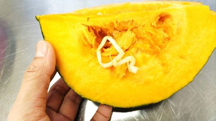 みなさんは、かぼちゃを割って中からもやしのようなものが出てきたことはあるでしょうか?