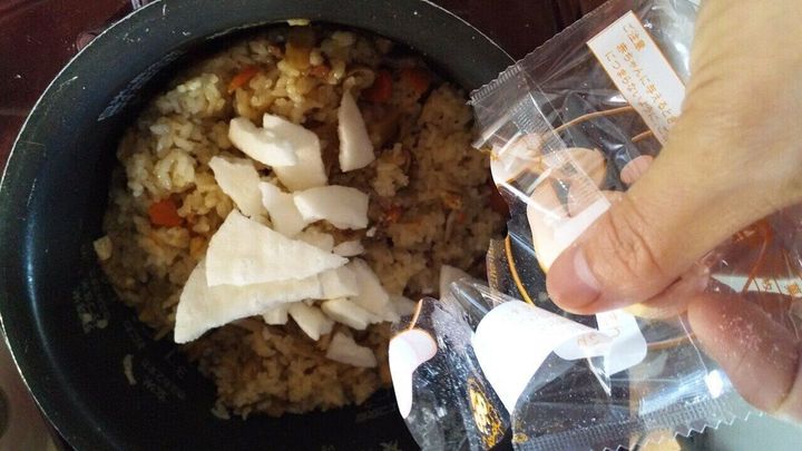 また、同じおこわでも、もち米を使わずにおかきを加えるつくり方もあります。その場合は、お米1合につき30gのおかきを割って炊いてください。