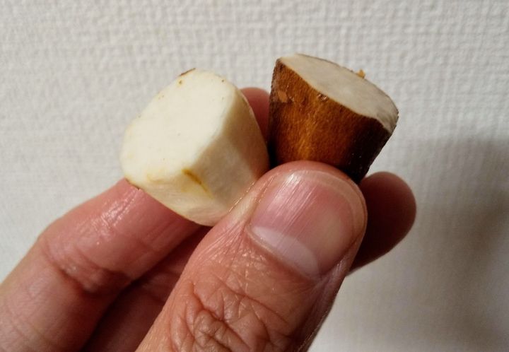 見た目は、表面がざらざらしていてキウイのような、ふっくらとした形が芋のような感じですが、大きさはまちまちで親指よりも小さいサイズもありました。