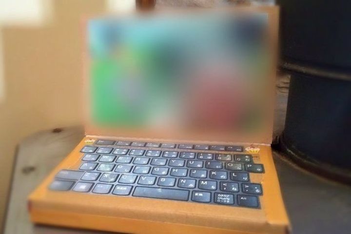 これは、何かを参考にしたわけではなく、子供たちもパソコンをしたいという要望に応じ、家の中にあるものでひらめいたのだそう。