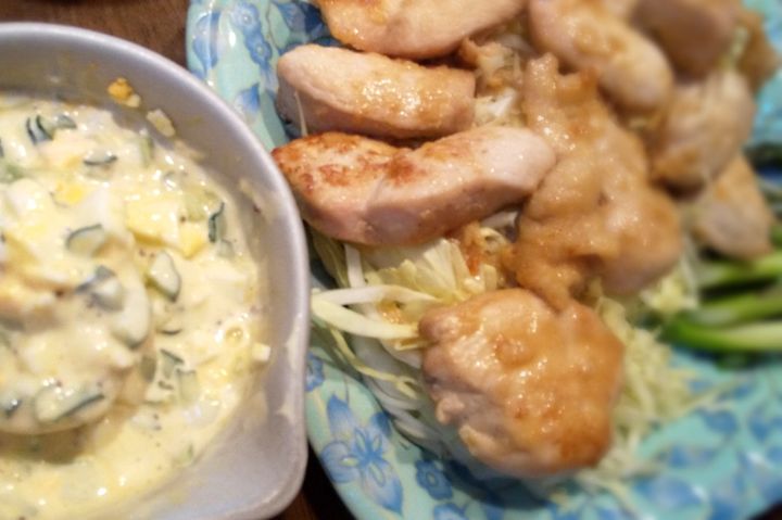 ちょうど冷蔵庫にストックのあった鶏むね肉でチキン南蛮を作り、それに添えるタルタルソースの中に入れてみることに。