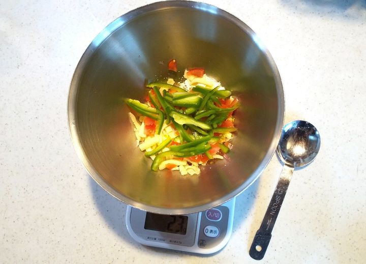 1. 野菜は、細切りや角切りなど、火が通りやすいように切りそろえる。