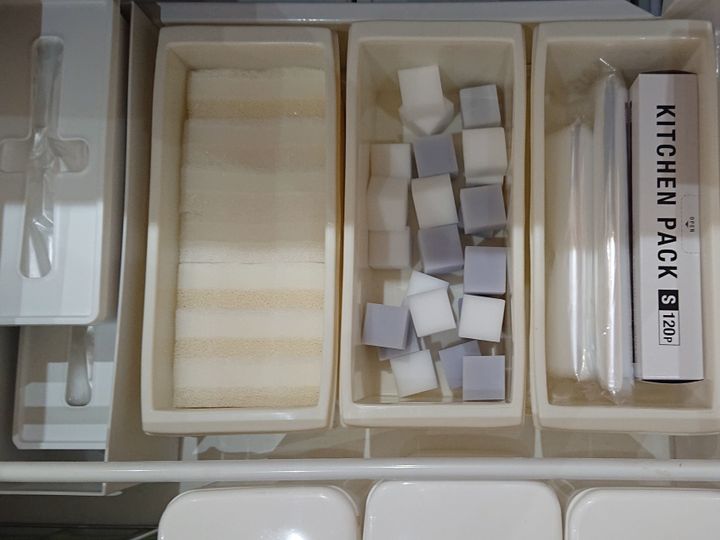 キッチンの消耗品はいつも100円SHOPでそろえています。今回は流しの下の引き出しに収納している消耗品についてご紹介したいと思います。