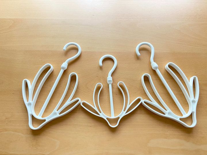 我が家は子供が3人なので、通常サイズとミニサイズの3個持ちをしているほど気に入っているのがシューズハンガー。下の子はまだ2歳なので保育園で上靴はありませんが、上二人は小学校の上靴を毎週持ち帰ってくるので毎週末大活躍しています。