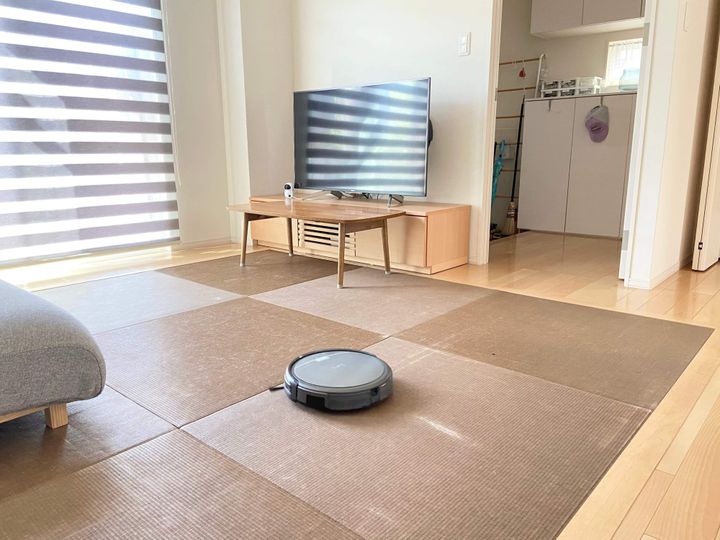 確かにおうちはコンパクトで自分で掃除機をかけてもそれほど時間がかかるわけではありませんが、気になった所だけポイントでかければ良いのと、毎日かけないといけないのとでは全く違います。絨毯にも使える機種にしたので2階寝室でも使えますし、使用前に心配していたような畳が悪くなるということもありません。ソファーの下にお掃除ロボットが入っていけないことや、ダイニングの椅子が机に引っ掛けられないタイプなのは残念ポイントではありますが、それは買い替えのタイミングで解消していきたいと思っています。