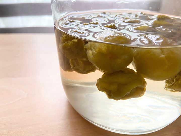 (注意)冷凍することで急激に梅エキスが出るため梅がシワシワに萎みます。エキスがたくさん出る分味は良いのですが、抽出後に梅ジャムなど料理に使いたい方には不向きなので注意して下さい。