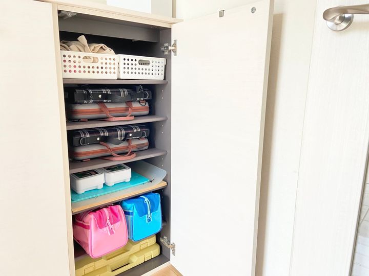 普段学校に置きっぱなしになっている学用品が一気に家の中に入ってくるとお部屋がカオスに!大きな休みごとに必ず持ち帰ってくるので、リビングや子ども部屋に出しっぱなしになってゴチャゴチャしないよう収納場所を確保しておくことが大切です。