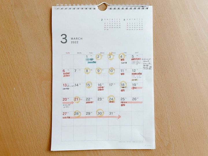 PTA行事や学校行事、習い事で年間で予定が先にわかっているものはどんどん先に書き込んでいくことで予定の重複を防ぐようにしています。