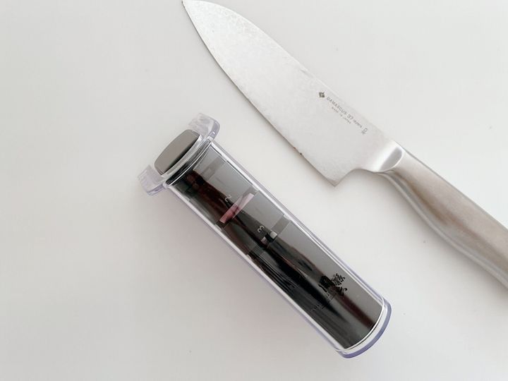 包丁は長く使っていると刃先にキズがつき摩耗して少しずつ切れ味が悪くなってきますよね。100円ショップや雑貨屋さんで購入したシャープナー(包丁研ぎ器)を試してみたこともありますが、切れ味の改善は実感できずだんだんと使わなくなり、切れ味が悪いまま放っておく結果に。