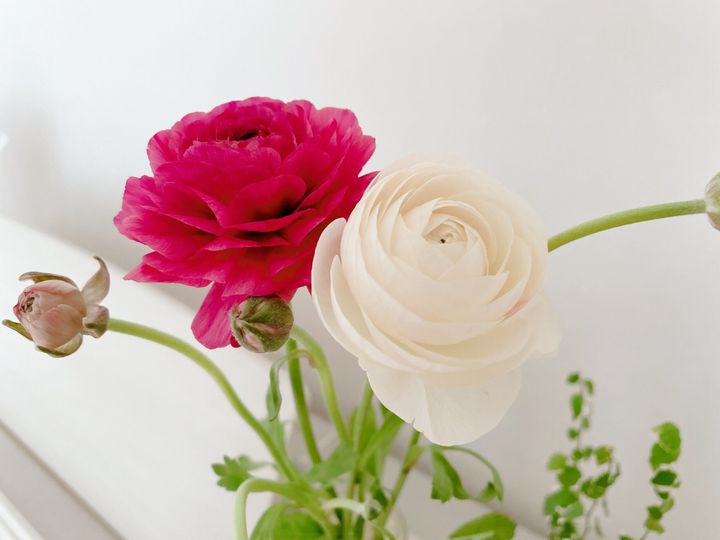 最近購入したのは無印良品の切り花。2本で税込500円のラナンキュラス。蕾だった花が開いたのを見つけた時は本当に幸せな気持ちになれます。この時期だと桜の枝物もおススメですよ。