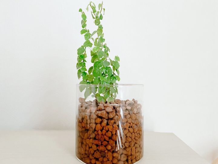 水やりの手間がほとんどなくほったらかしでも大丈夫なハイドロカルチャー。気に入った根の生えた観葉植物とハイドロボールを組み合わせるだけ。透明な容器を使えば水の残量を確認しながら育てることができるので水切れの心配もありません。