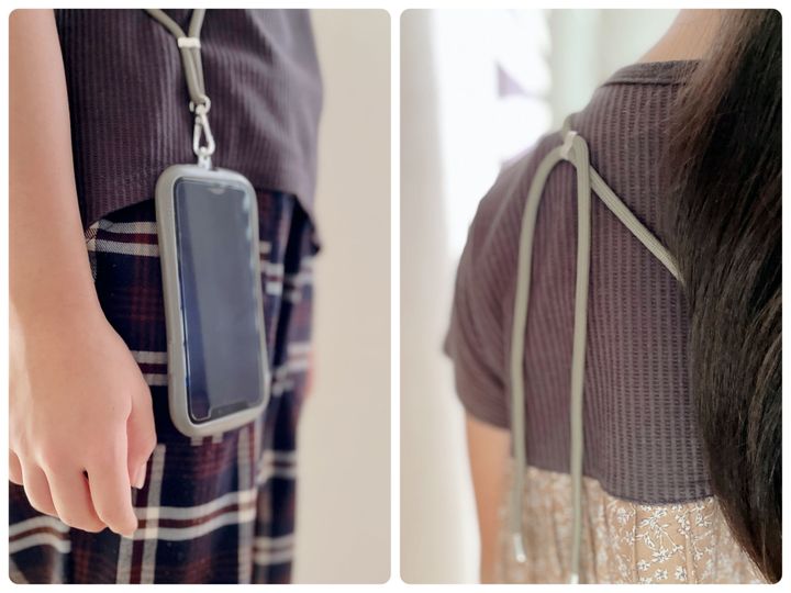 習い事や子ども達だけのお出かけにはスマホは大事な連絡ツール。スマホを単体で持ち歩いているとどうしてもカバンの中からすぐに取り出せない、手を滑らして携帯を落とすなんてことがありますよね。近所のお出かけくらいだと子ども達が持ち運ぶのはスマホだけというのもよくあることです。