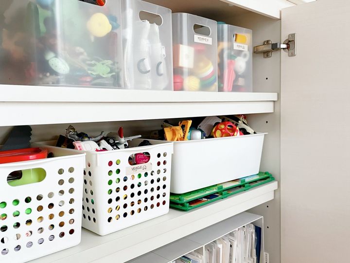 片付けを一番楽にしてくれる方法は家族が物の定位置を把握していることです。どこに物を置くかをわかっていれば戻すのも簡単。30代に家の収納のほとんどを見直したので、今は新しい物が家にやってきた時や子ども達の成長に合わせて微調整をしていくだけ。家が大きく乱れていかないのは物の定位置が決まっていて片付けに手間がかからないおかげです。