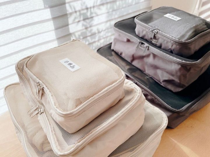 衣類圧縮は出来ないですが、片面がメッシュで通気性が良く中身が見えて探し物がないのは同じ。取っ手もあるので持ち運びも便利。3サイズのセットなので消耗品、お風呂セット、衣類というように綺麗に仕分けることができるので、旅行準備も片付けも楽ちんです。
