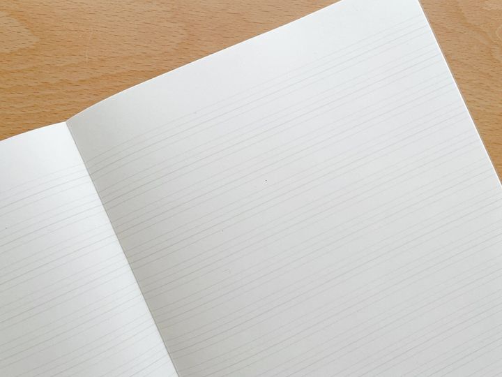 常備しているノートの3つ目が無印良品の「ノート・英習罫・15段・B5(税込120円)」です。2024年初の新商品。罫線の色が薄めなので、書いた字がはっきりとよく見えるのが特徴です。同サイズで13段もあるので、小学生のうちは幅広の13段が使いやすいかもしれません。