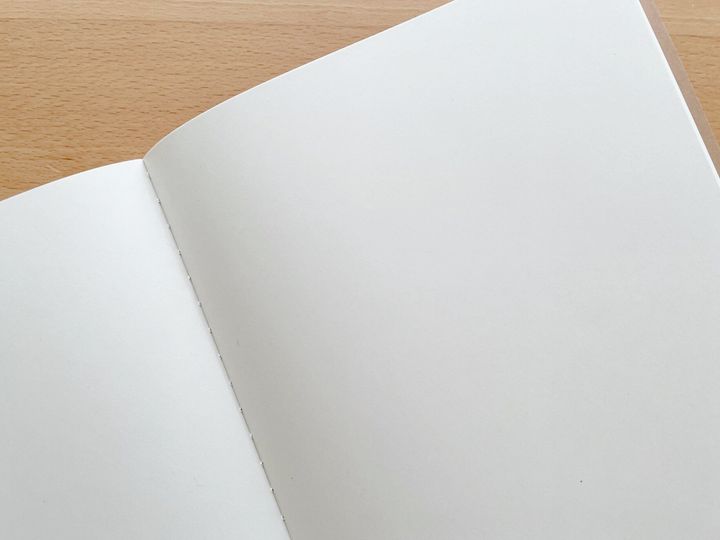 常備しているノートの1つ目が無印良品の「ノート・無地」です。表紙が無地でシンプル、ノート自体に上下左右がないのでどこからでも使えるのが特徴です。