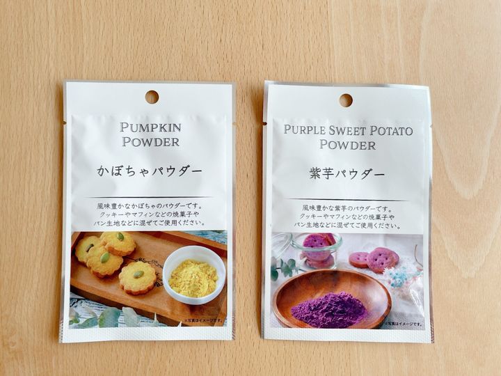 他にもかぼちゃパウダーや紫芋パウダーなどがあり、どれも優しい素材の色が楽しめるパウダー。