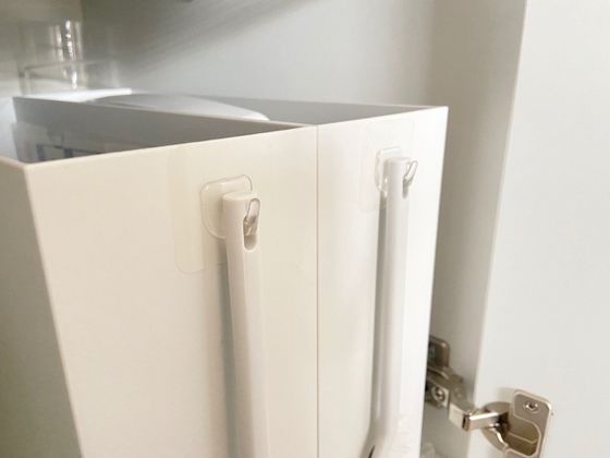 そこにくっつけ浮かす収納にしています♪