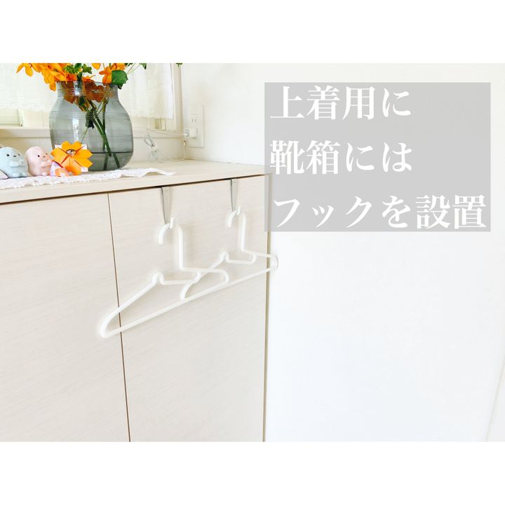 上着もその辺に放置されてしまう物の1つです。我が家では玄関の靴箱にフックを設置して、外から帰ったらここに上着をかけてもらうようにしています。