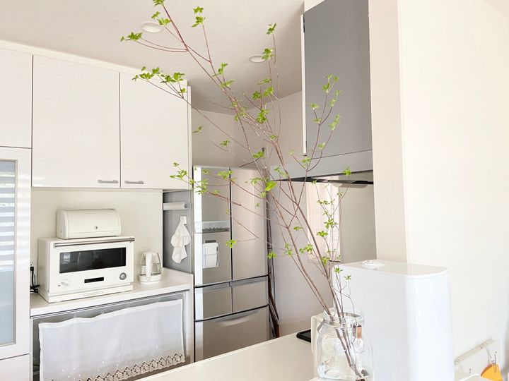 キッチンは生活感が出やすい場所。極力隠してしまいたいところではありますが、やはり毎日使うものを隠してしまうと不便になるものは出しっぱなしにしたいですよね。