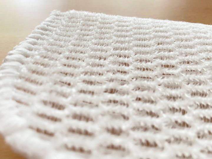 アミタワシはもちろんへたってはくるのですが(長く使っていると毛玉が出来てきます)、3ヵ月くらいは余裕で使っていられます。とすると6ヵ月で2枚でOK。在庫が少なくてすみます。もちろんこれは使う方の考え方によって大きく異なってきますし、途中のケアが抜けるとここまで持ちません。1ヵ月に1枚の使用としても、半年で6枚。薄型なので全く場所をとりません。