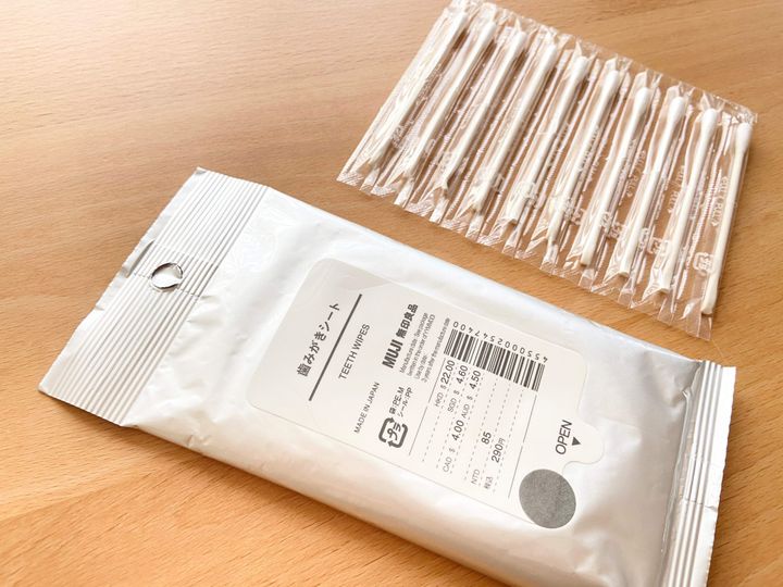 ライフラインが止まった時に歯磨きができない状態が考えられるのですが、そんな時のために持っておきたいのが歯磨きシート。口腔ケアは健康維持に非常に重要なので防災用品の1つに加えておきたいところです!他にも耳かき付き綿棒も持っておくと便利です。