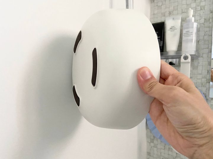 水が溜まりにくい形になっているので、壁面にさえ貼り付けておけば、おけの中の水は自然に水切りされるのでとっても衛生的!ぬめりやカビとも無縁で、綺麗なままをキープしています。